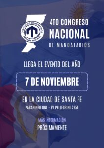 Este año realizaremos el 4to Congreso Nacional de Mandatarios del Automotor a realizarse en el Paraninfo de la UNL el día 7 de Noviembre. Inscripciones